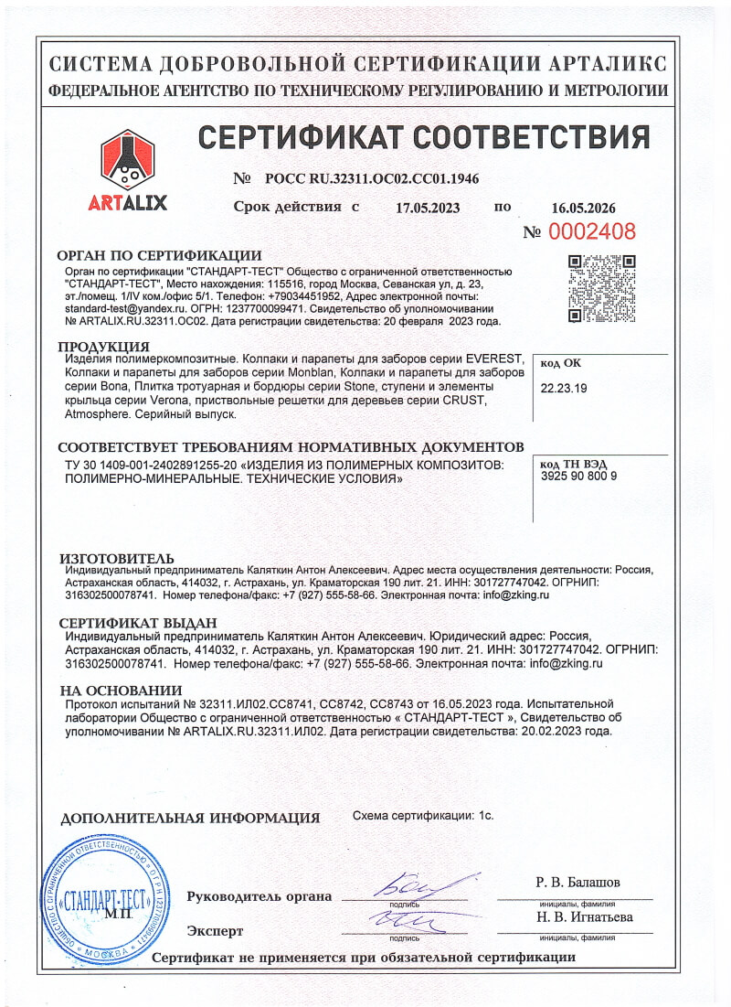 Сертификаты соответствия ZKING для Сыктывкара